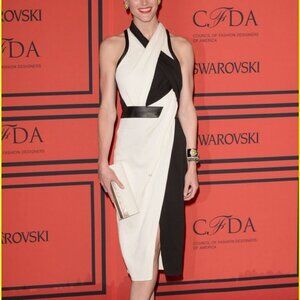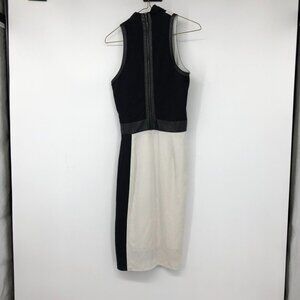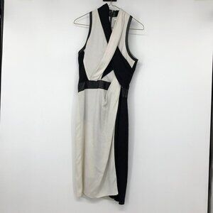 HELMUT LANG TWISTED DRAPE GRAINED VISCOSE LEATHER TRIM DRESS Black + White SZ 0