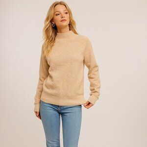 HEM & THREAD Beige Mock Neck Cozy Knit Sweater, Soft Neutral Pullover
