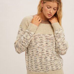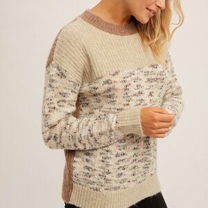 HEM & THREAD Colorblock Knit Sweater, Neutral Beige Brown Multi, Soft Cozy