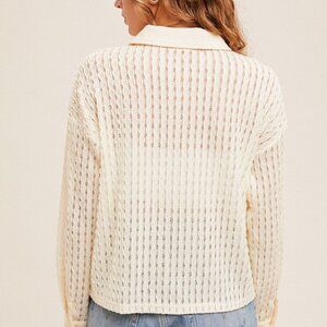 Cream Textured Sheer Button-Up Top, Lightweight Shacket Blouse, Long Sleeve Layering Shirt