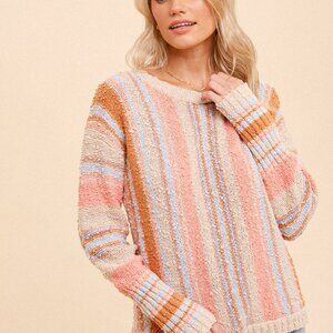 Multicolor Striped Knit Sweater Long Sleeve Soft Boho Casual Pullover