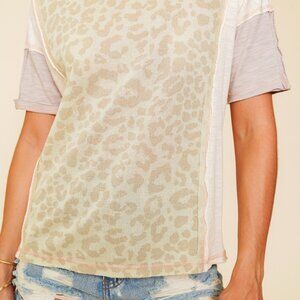 leopard tee, animal print top, neutral top, beige shirt, taupe tee, mixed media tee, casual chic top, boutique style, soft knit tee, spring fashion, summer top, trendy basics, everyday wear, comfy cute, boho neutral, aesthetic style, capsule wardrobe top, lightweight tee, soft wash top, casual leopard print, feminine neutral palette, loungewear chic