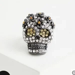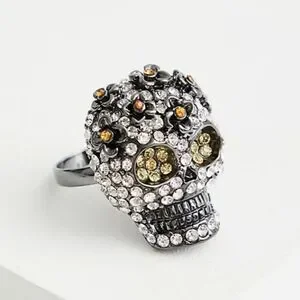 🆕☠️HEMATITE SKULL & RHINESTONE RING☠️