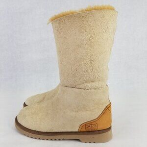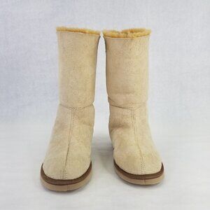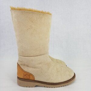 H.E.R. Australia Tall Boot Women 7-8 Beige Suede Shearling Lined Leather Slipper