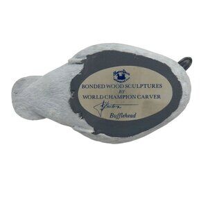 Crafted with precision, this bonded wood Bufflehead duck sculpture showcases the artistry of a world champion carver, adding a timeless aesthetic to decor.
