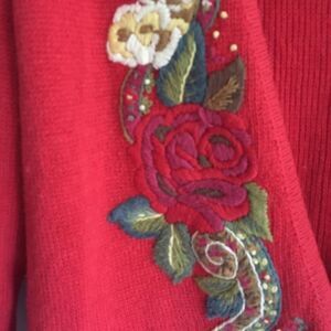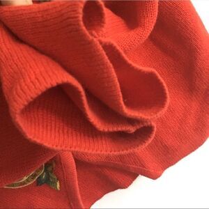 HERMAN GEIST Hand Floral Embroidered Embellished Cardigan Sweater Red S