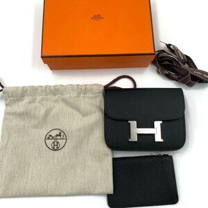 This Hermes Constance slim crafted with beautiful epsom leather featuring frontal "H" buckle along with removable zippered change purse, 2 card slots and belt loop. You can use it as a belt bag or can purchase an insert to make it into crossbody bag. This small bag cannot fit cell phone.