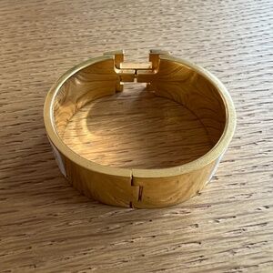 HERMES GOLD TONED WHITE CERAMIC CLIC CLAC BRACELET