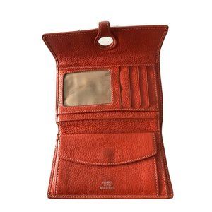 HERMES Orange Leather Dogon Purse Folded Wallet Clutch Vintage