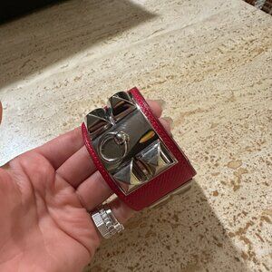 HERMES RED EPSOM LEATHER COLLIER DE CHIEN BRACELET