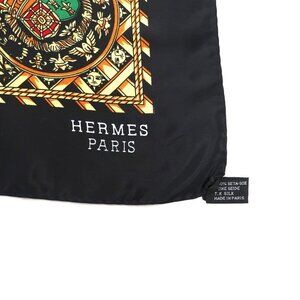 HERMES Silk Scarf Carre 90 Crowns Fleur De Lis Gold Black Vintage