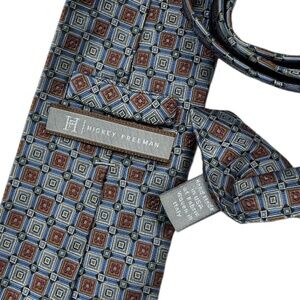 HICKEY FREEMAN Blue/Brown Geometric Silk LUXURY Tie HANDMADE USA