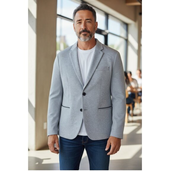 HIP ZARA MEN'S GREY BLAZER, L, STYLISH CLASSIC SLIM FIT STRETCH COMFY
