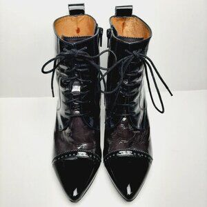 HISPANITAS Booties Lace-up Stiletto Heels Oxford Patent Leather Sz 6.5 | Eur 37