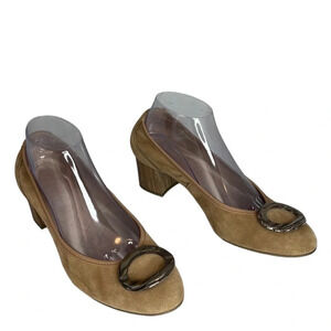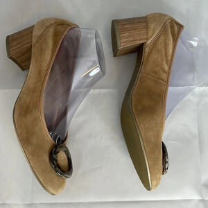 HISPANITAS Suede Wood Block Heel Pump Tan Tortoiseshell Decorative Buckle 39.5