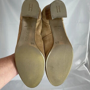 Women’s tan beige Hispanitas “Joy is a Choice” Genuine Suede Leather Wood Bloch Heel Shoes.