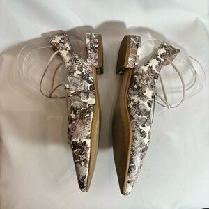 HISPANITAS Sz 38 Pointy Toe Floral Snake Embossed Made in Spain Sling Back Flats. Gorgeously unique. Dress up or down. Statement piece that is surprisingly subtle. Stylish and comfortable.
