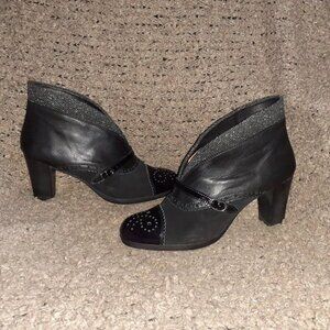 HISPANITAS-Black Patent Leather-Multi Material-Glove Heel Bootie-Sz 41-Near Mint
