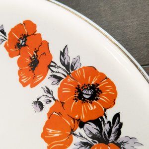 H&K Tunstall ENGLAND Poppy Floral Large Plate Platter Vintage White Red Gilded