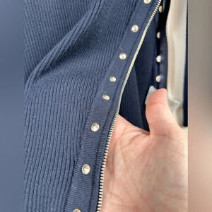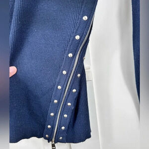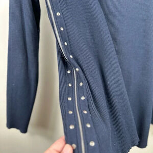 HKR Collections jersey knit sweater, L, blue, crewneck, studded, zipper detail