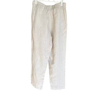H&M 100% Linen Beige Pants Straight Leg High Waist Elastic Women's XS