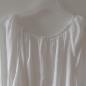 Size Med 23" long, 24"w flat (pit to pit) 27" width at hem, puffy sleeves are 20" long and 9" wide