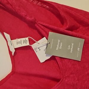 H&M 100% Linen Sleeveless Shirt Hot Pink New With Tags Womens Medium Oversize