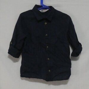 H&M | 5-6 years | Dark Navy Blue Button-Up Linen / Cotton Shirt | Roll Tabs
