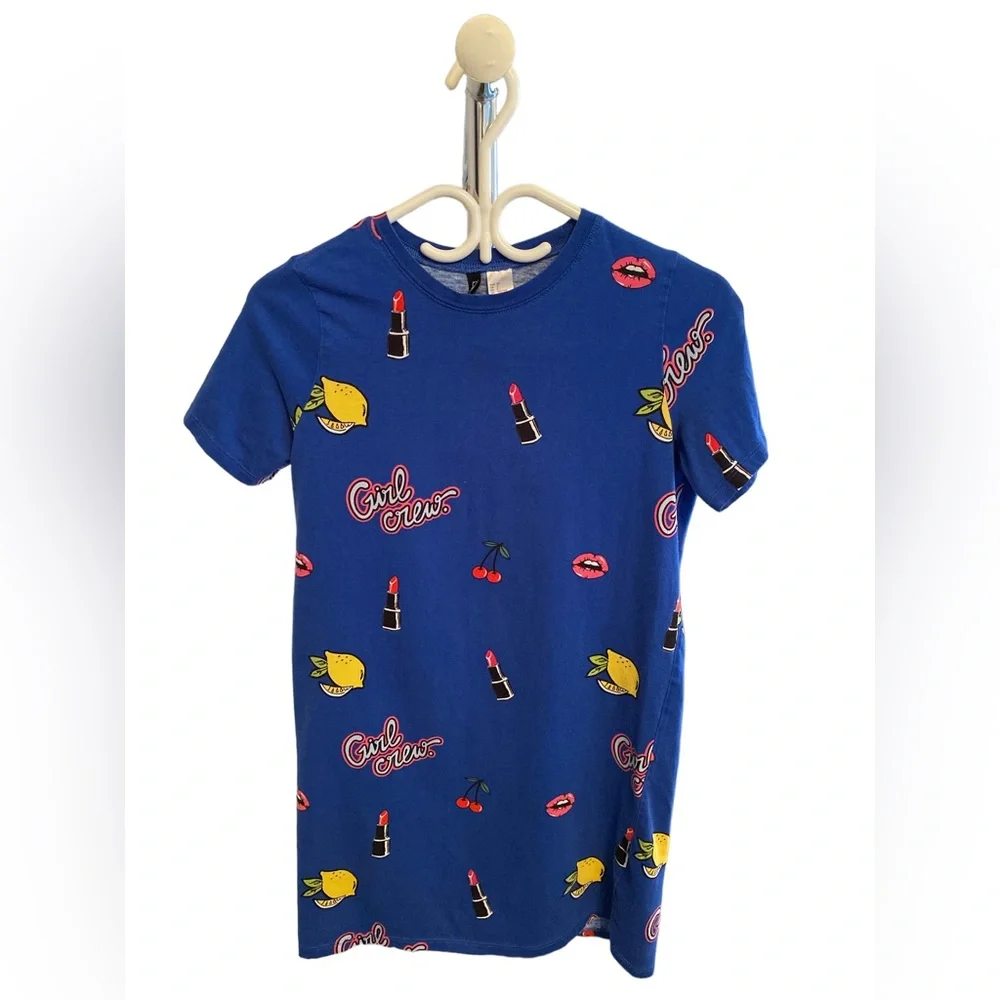 Short sleeve fashion dress or tunic top. Long enough to be both. Graphic print all throughout, no pockets or zipper. Good amount of stretch, gently used, in good condition. Pit to pit measures 16”