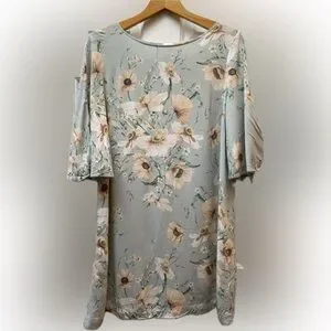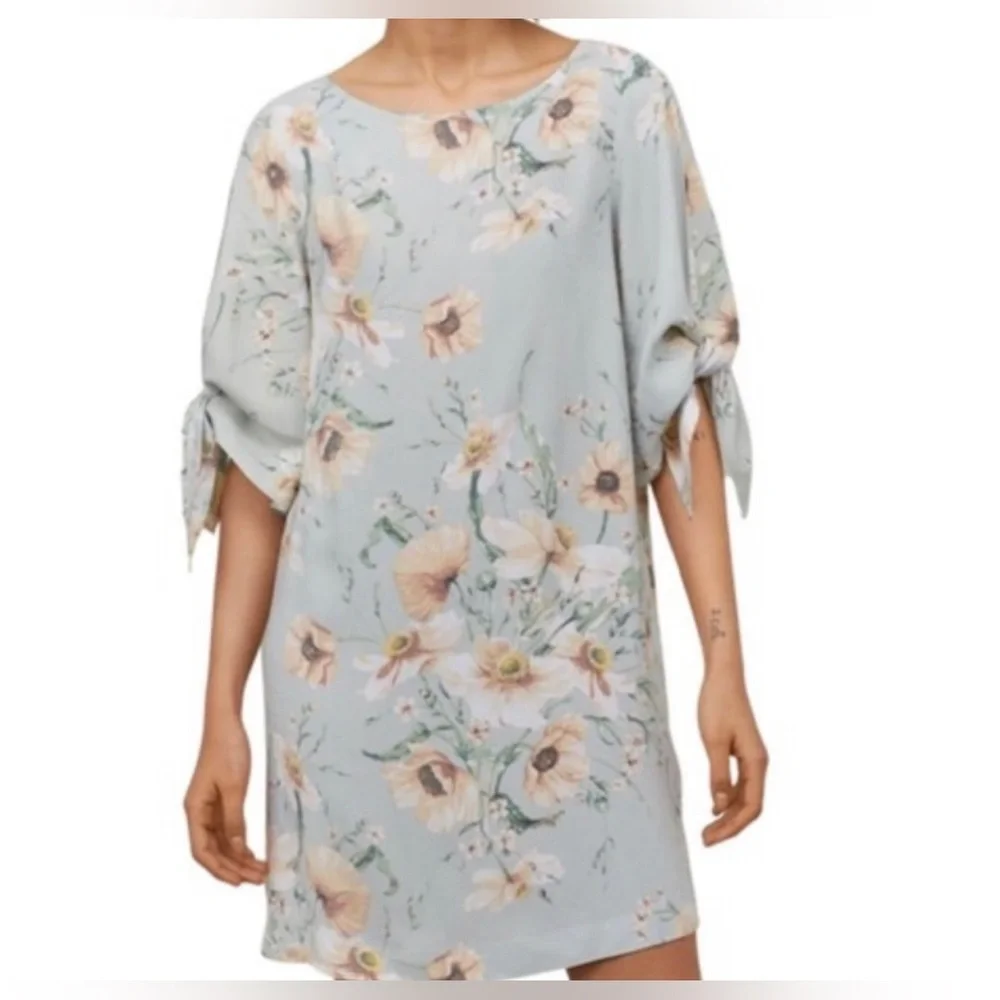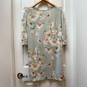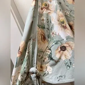 Sage green floral lightweight dress with split and knotted sleeves Approximately 34” long Good preloved condition