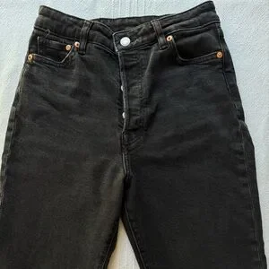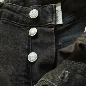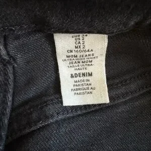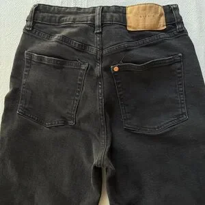 Black H&M Mum Fit jeans in perfect condition. High-waisted style with a relaxed fit through the hips and tapered leg. Classic, versatile piece that goes with everything. Worn only a few times, no flaws, stains, or fading.