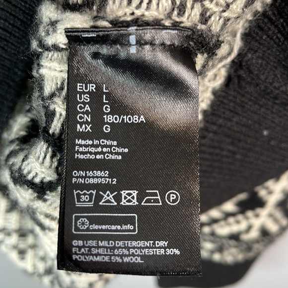 Women’s black and white H&M 90s Vibe Wool Blend Nordic Pattern Knit Sweater.
