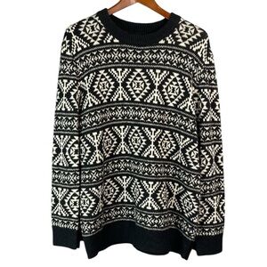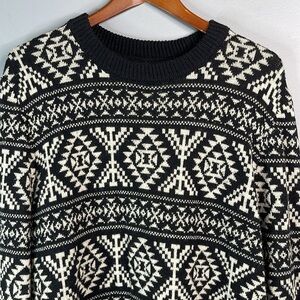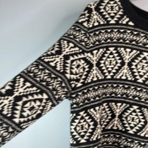 H&M 90s Vibe Wool Blend Nordic Pattern Knit Sweater Black White Round Neck L