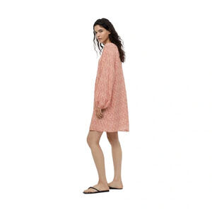 This H&M A-Line Mini Dress combines elegance and ease with its dark orange patterned design and cream accents. The flattering A-line silhouette creates a timeless look, perfect for casual outings or semi-formal events. Lightweight fabric ensures comfort, while the versatile style pairs effortlessly with sandals, boots, or heels. A chic addition to any wardrobe!