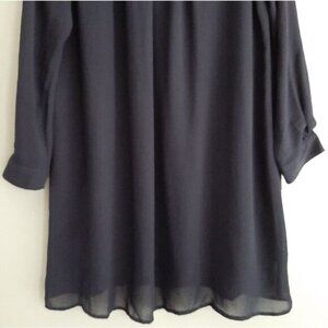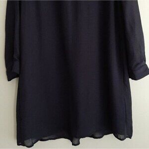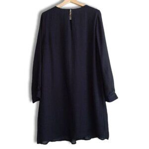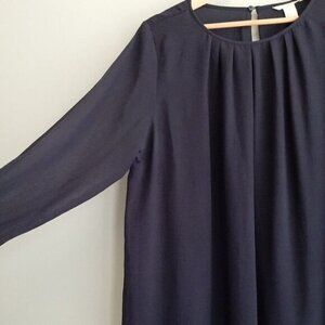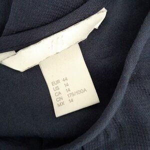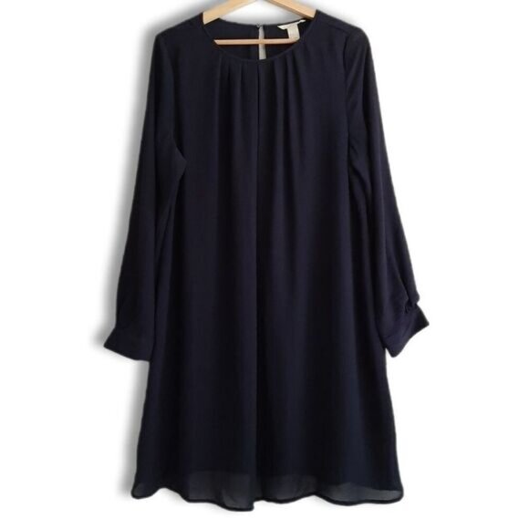 H&M / A-Line Sheer Sleeve Pleated Scoop Neck Knee Length Dress Navy Sz 14