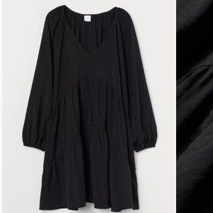 Short, A-line dress in woven viscose fabric with a low-cut V-neck. Long, wide raglan sleeves with narrow, elasticized cuffs. Gathered, asymmetric seams for added volume. Unlined.
