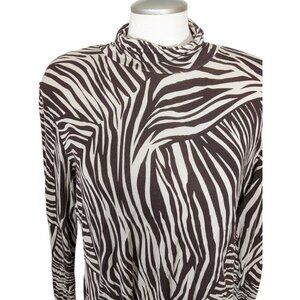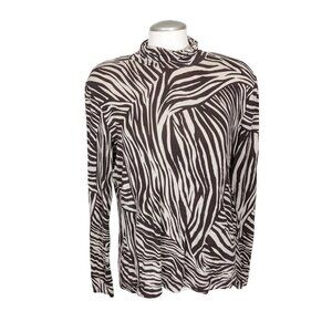 H&M Animal Print Mock Neck Top Womens XL Brown Tiger Stripe Long Sleeve Stretch
