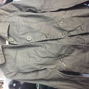 This coat is a cotton 95% cotton blend, safe for machine wash. Made in Bangladesh. Two extra buttons on the inside. Freshly washed. Needs to be ironed/steamed. Really nice, just too small for me. Thanks for checking out my page! <3