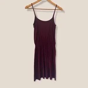 Comfy and flowy burgundy dress from H&M. Stretchy and cinched waist. 95% viscose, 5% elastane. Size S.