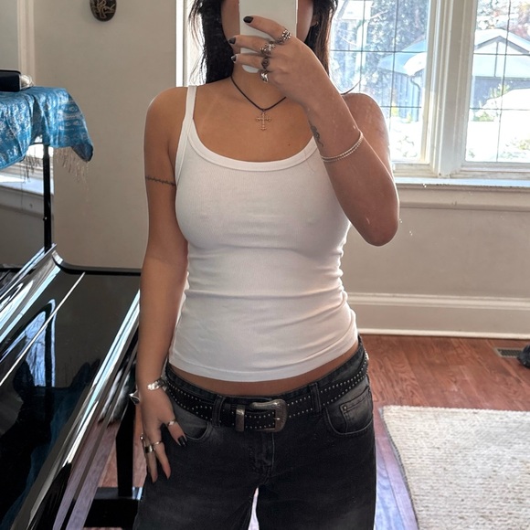 H&M Basic White Ribbed Tank Top