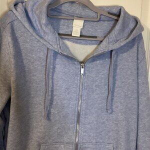 H&M Basics Women's Light Blue Fleece Hoodie Size L Front Zip Pockets Warm Soft