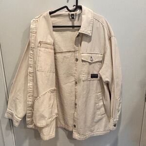 Cute oversized beige button-up jacket. Ideal for casual wear.