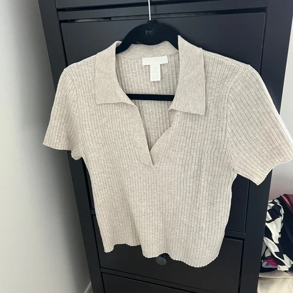 Chic ribbed crop top with a collared neckline. Soft and stylish for versatile wear.