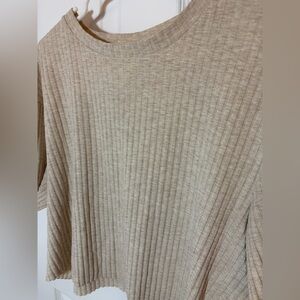 Stylish beige ribbed top. Short sleeves for a relaxed fit. Perfect for everyday wear.