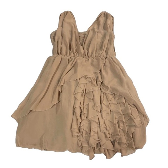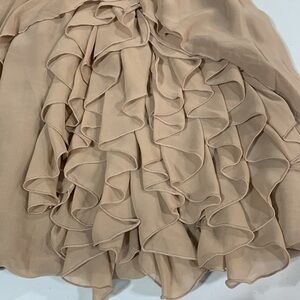 Adorable ruffled dress with sheer top over a strapless dress with Rouching