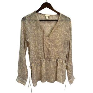 H&M Beige🤎Blousy Floral Peplum Top Blouse Size M