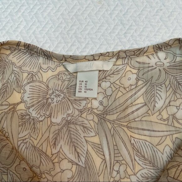 H&M Beige🤎Blousy Floral Peplum Top Blouse Size M