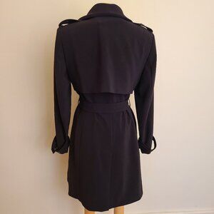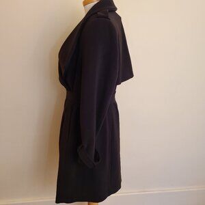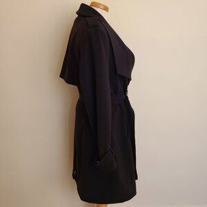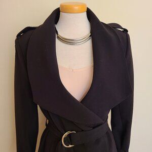 H&M Black 3/4 Length Flowy Waterfall Lapel Belted Wrap Trench Coat