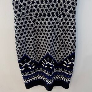 🔷 H&M Black & Blue Geometric Midi Dress Size Small