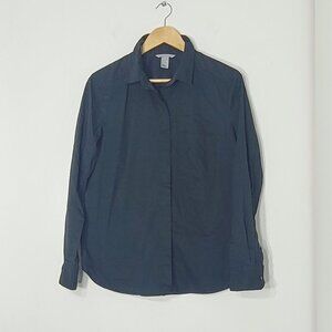 H&M Black Cotton Blend Classic Long Sleeve Collared Button-Down Shirt Size 14